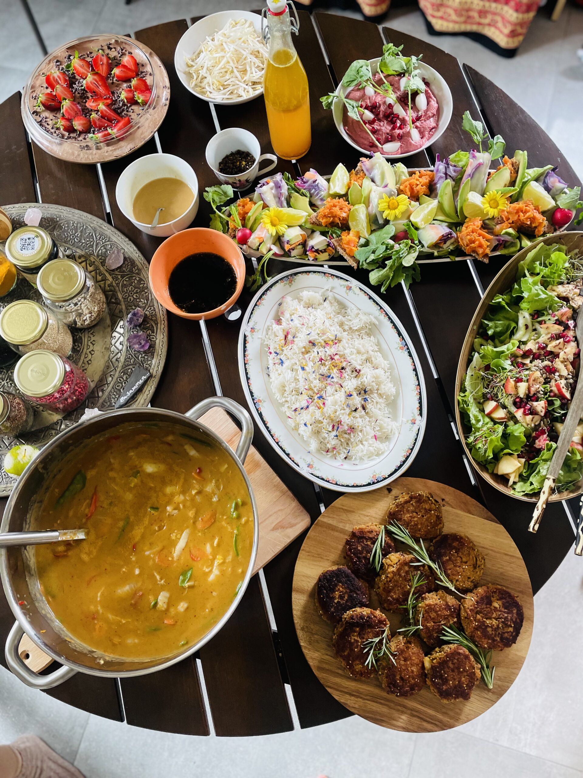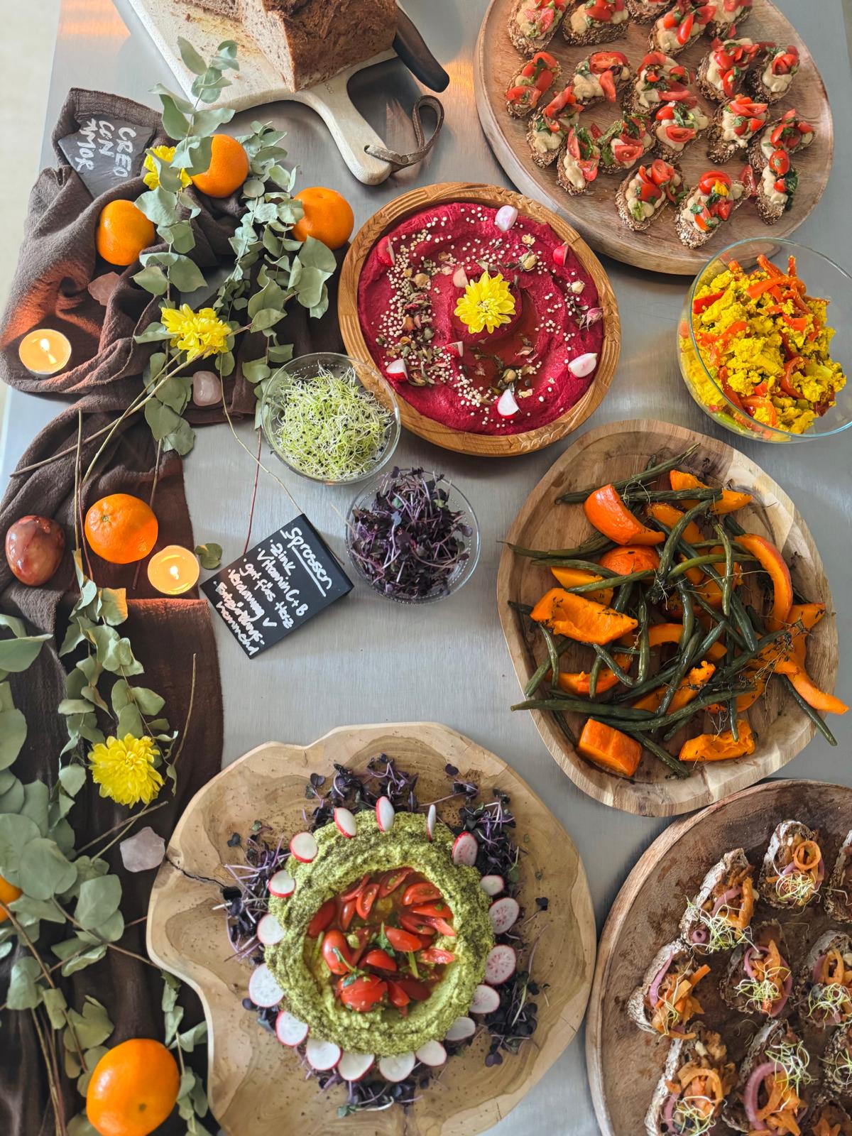 Ich kreiere abwechslungsreiche, gesunde und farbenfrohe Menüs für jede Art von Veranstaltung – vom entspannten Brunch in kleiner Runde bis zu grossen Festivals, Retreats oder privaten Feiern.
